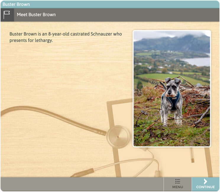 - Buster Brown – an 8-year-old, castrated Schnauzer who presents for lethargy.